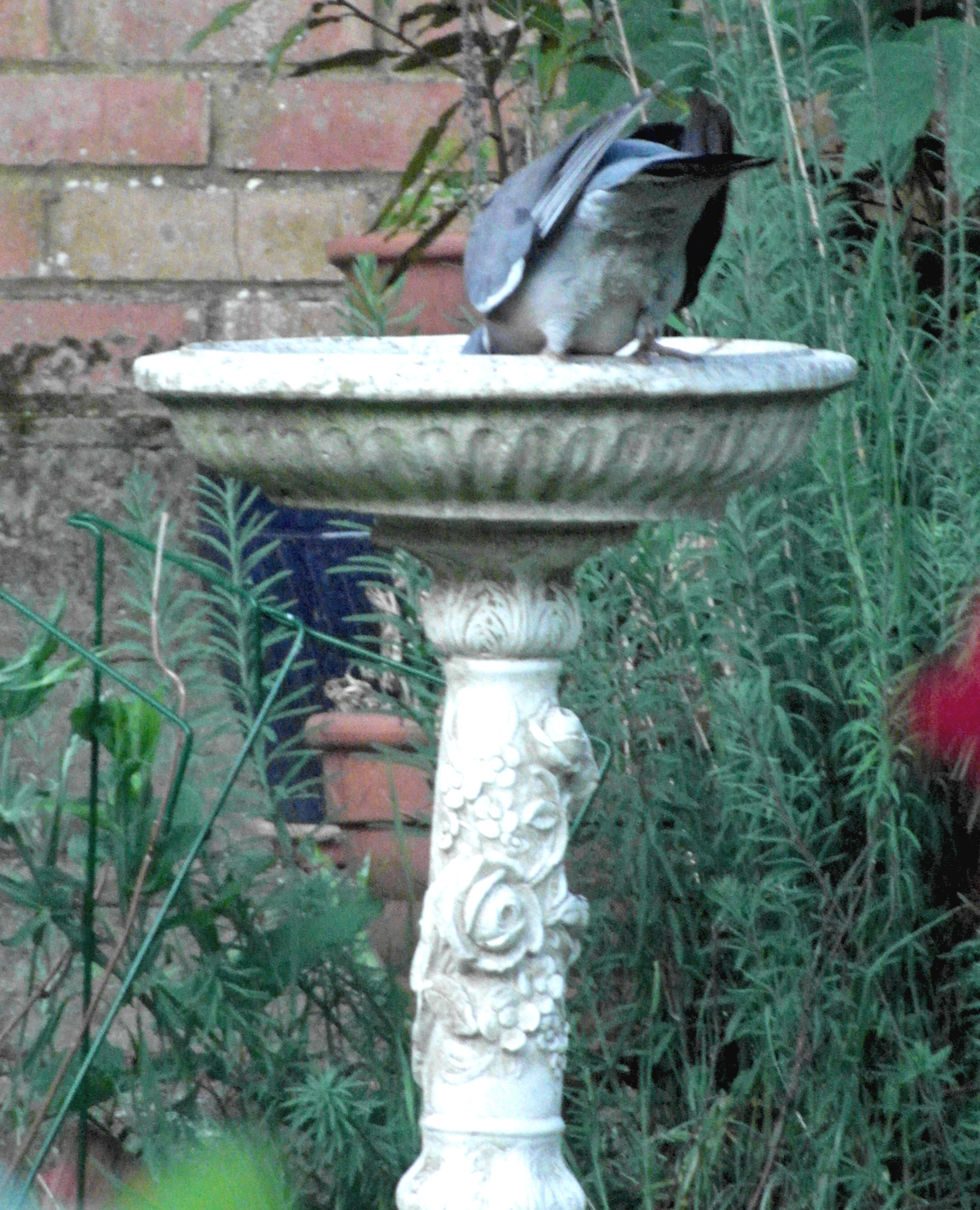 I must admit, one of the arguments against the birdbath was justified: it IS always filthy and a bit of a chore keeping it clean, but worth every scrub of the brush for the constant spectacle it offers.