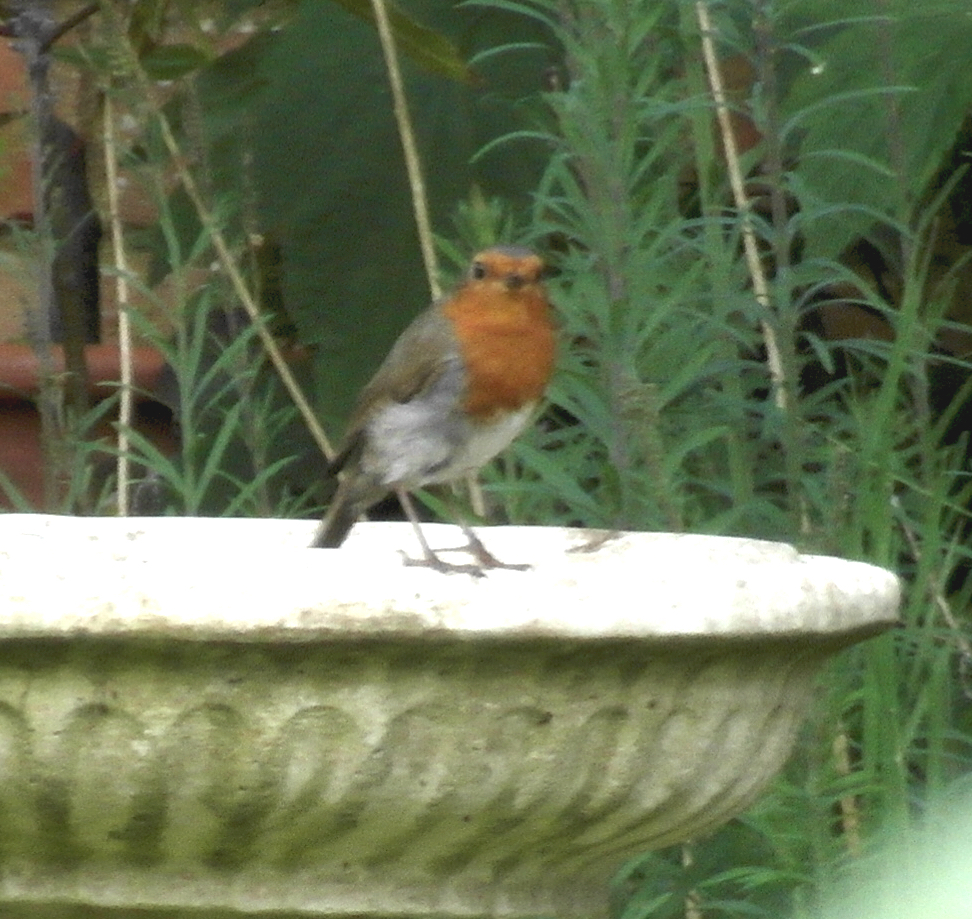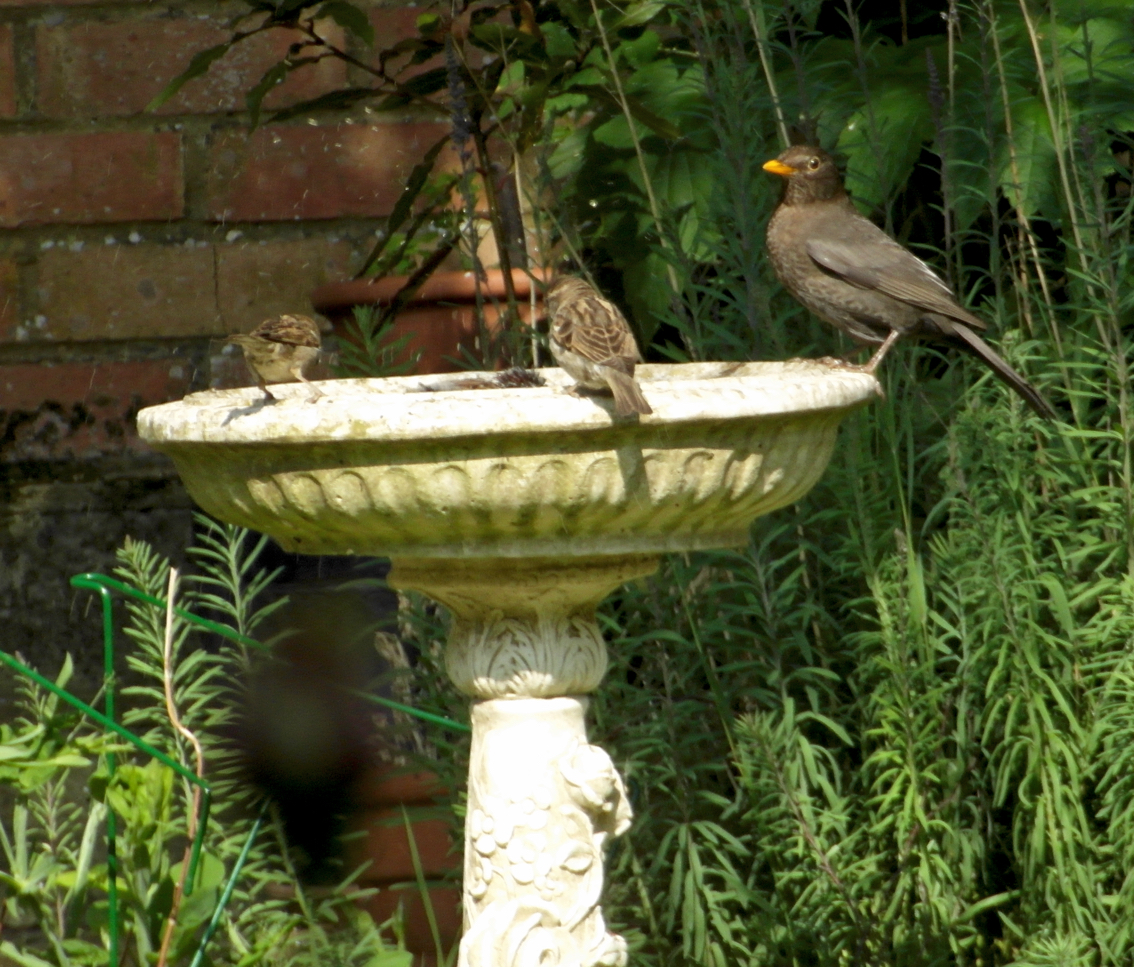 There are still some inhabitants of my garden who have yet to get their feet wet: I have never seen the wrens, the blue tits, the great tits, the long-tailed tits or the greenfinches capering in there. I am keeping an eye out and will update the post if I catch them.
