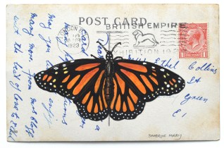 I have a new hobby: I am painting plants and insects on the back of vintage postcards, from the Victorian era up to pre world war II. Some are still blank but others were written and sent.