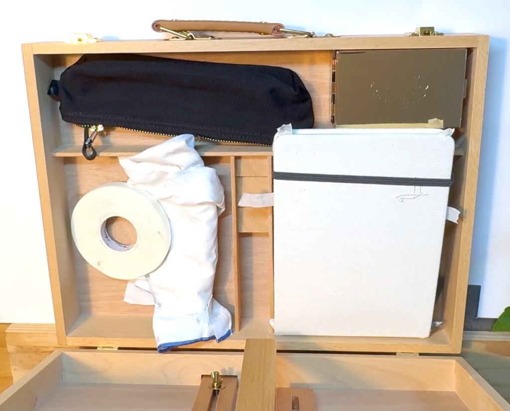 After using the sketchbox in the field and testing it in tough conditions, I was pleased with the way I could carry everything I needed and the way it gave me enough stability. It also looks good with the all beech construction. It’s a keeper and I look forward to many plein air trips with my sketchbox.