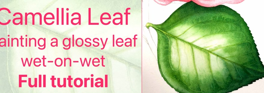 Hello, It is the start of Camellia season here in the UK, so I thought it would be a good time to post a tutorial of these slightly tricky glossy leaves.I always paint my leaves wet-on-wet but it is even more important for the shiny ones. Painting wet-on-wet avoids all hard lines within the shape… Continue reading Glossy leaf with wet-on-wet watercolour – Painting a Camellia leaf